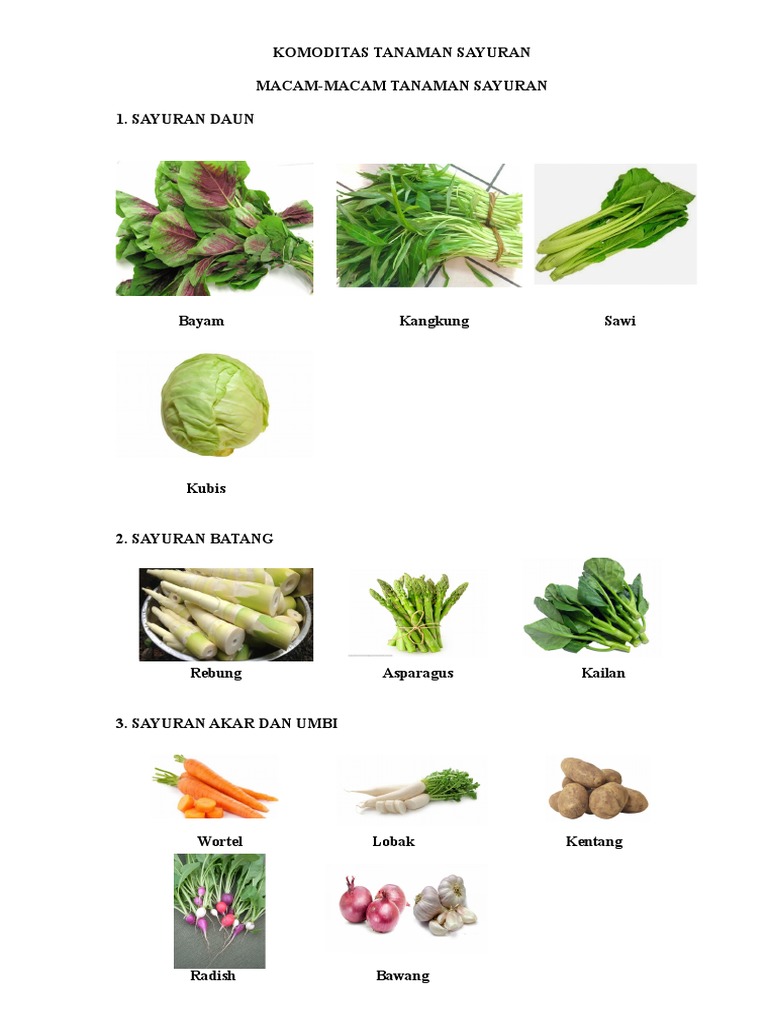 Jenis Jenis Tanaman Sayur Dan Bagian Yang Dapat Dimanfaatkan Bibit Online